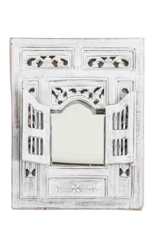 Decorative wall mirror in the design of a window frame with a whitewash finish. Ideal for small spaces and stylish accents.