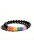 Bracelet 8mm colored calcite, black agate, with lotus flower pendant, 19cm