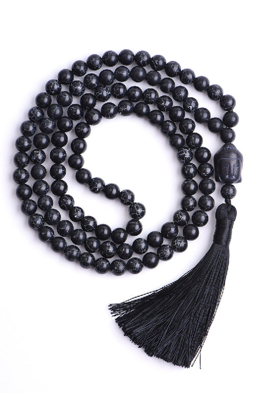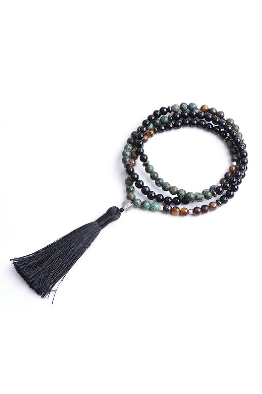 Mala necklace 6mm African turquoise, tiger eye, black onyx, 108 beads