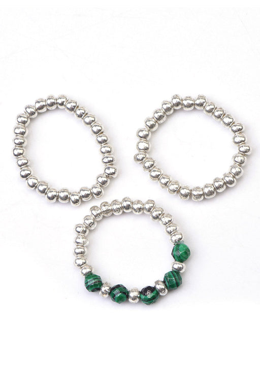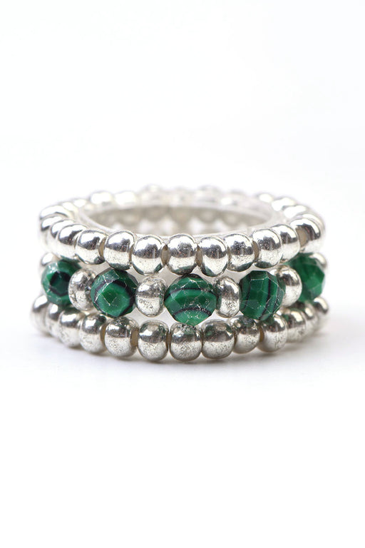 View full detailsRing 3-fold 3mm faceted malachite, dark green/silver-colored
