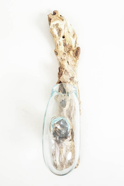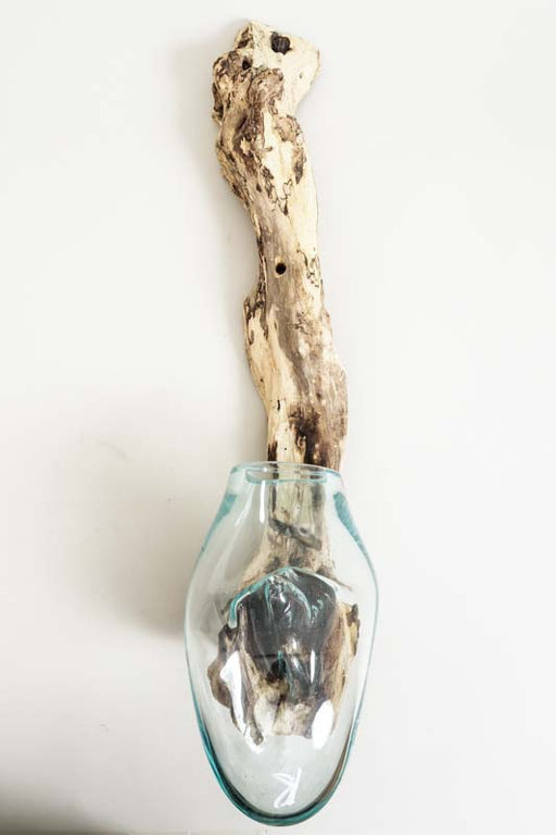 This stylish wall decoration combines rustic wood with an elegant glass vase. Ideal for dried flowers or fresh branches, it brings a natural touch ...