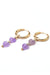 Gold-plated stainless steel earrings, 2 hearts, amethyst