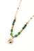 Gold-plated stainless steel necklace with sun, moss, agate and green jade, 42+5cm