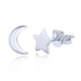 Silver stud earrings: crescent moon & star