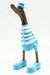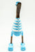 Wooden duck painted white/light blue with hat and shoes 35cm
