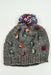 Bonnet tricoté gris/rouge/vert/jaune avec pompon - Taille unique