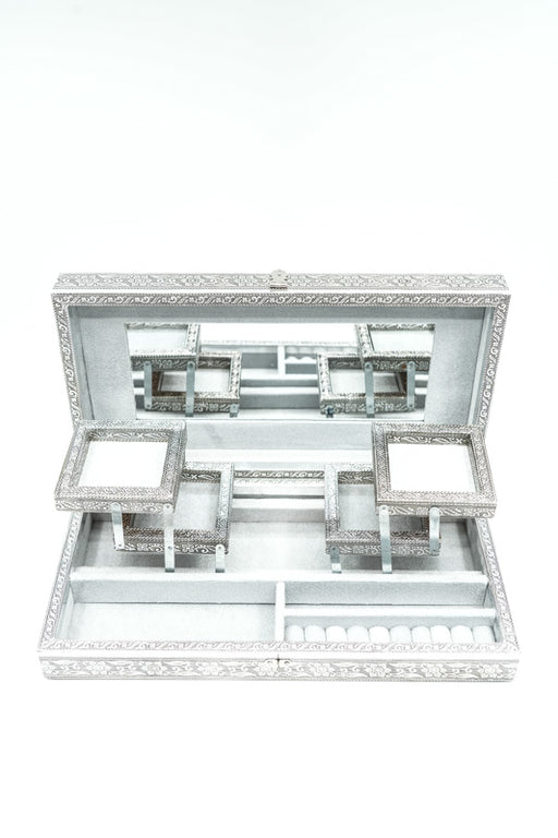 Boîte à bijoux papillons argentés 38x18x7,6 cm