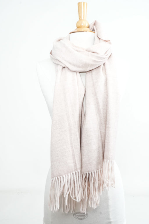 Écharpe beige en cachemire, viscose et laine. Dimensions : 70 × 190 cm – Chaude et classique : une teinte douce pour des associations classiques.