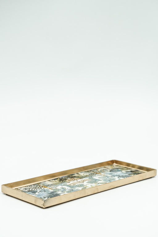 Plateau de service émaillé à motif de feuilles, 27 x 10 cm