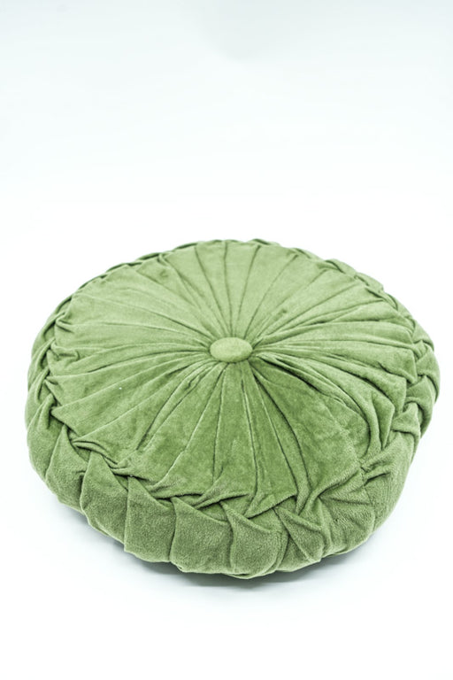 Coussin rond en velours sauge – frais et élégant - Vert doux pour une ambiance décontractée.