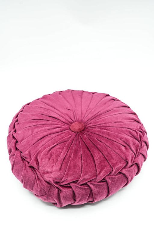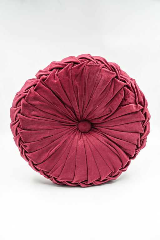 Coussin rond en velours rouge – vibrant et élégant – couleur audacieuse avec une finition luxueuse.