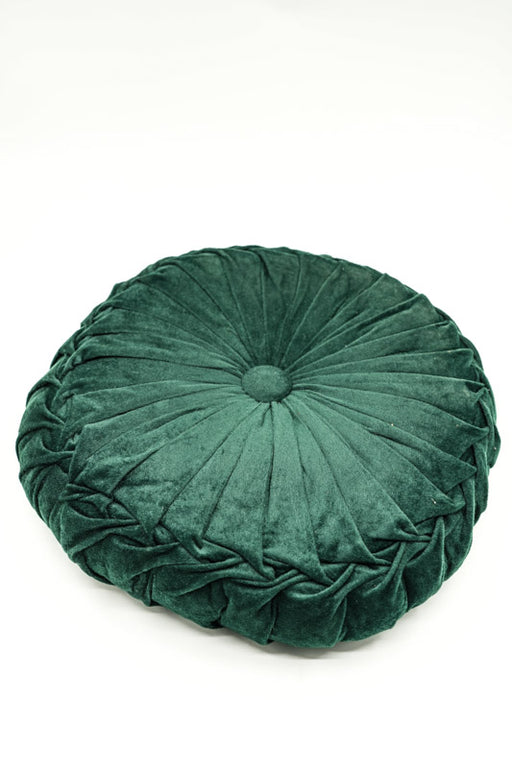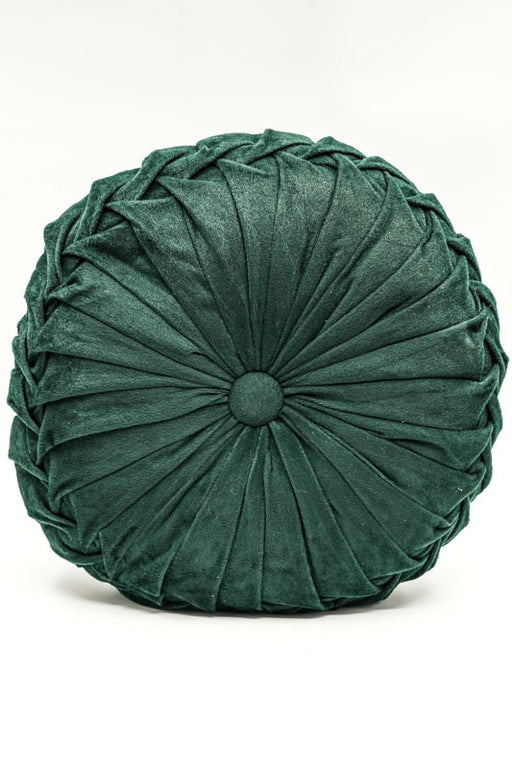 Coussin rond en velours vert foncé – profond et élégant – une touche verte pour des pièces élégantes.