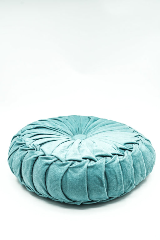 Coussin rond en velours bleu sarcelle clair – vibrant et doux – Teinte claire pour des accents frais.