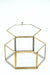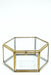 Boîte à bijoux hexagonale en laiton avec verre. Dimensions : 4 × 9 × 8 cm.