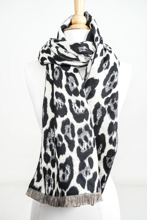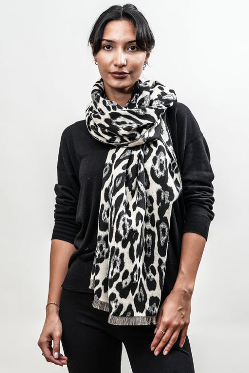 Écharpe viscose/laine imprimé animal beige/noir 65x185cm