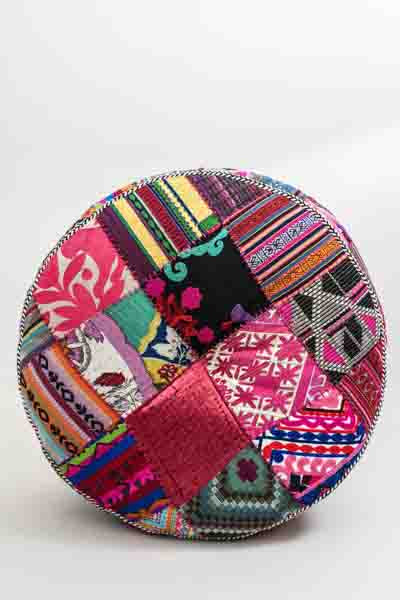 Ce pouf au design patchwork combine différentes couleurs et motifs pour un look unique. La broderie élaborée fait de chaque pièce un objet unique. ...
