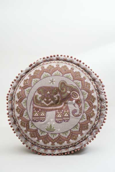 Le pouf motif éléphant aux couleurs naturelles apporte chaleur et exotisme à votre intérieur. Broderie de haute qualité et utilisation polyvalente.