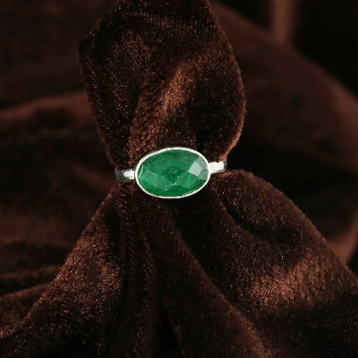 Bague en argent avec émeraude dans un sertissage compact – élégante et aérienne. // Guide des tailles : Taille 5 USA/Canada // 50 mm de circonféren...