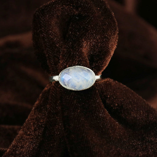 Bague en argent avec pierre de lune arc-en-ciel facettée dans un sertissage ovale – simple et magique. // Guide des tailles : Taille 5 USA/Canada /...