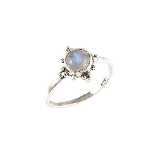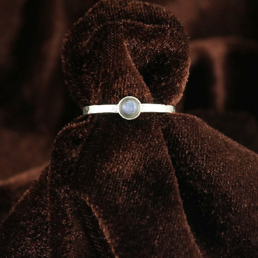 Bague en argent avec pierre de lune arc-en-ciel dans une petite monture – légère et scintillante. // Guide des tailles : Taille 5 USA/Canada // 50 ...