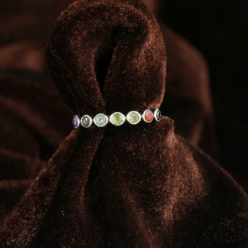 Bague en argent multi-pierres avec six pierres précieuses – colorée et unique. // Guide des tailles : Taille 5 USA/Canada // 50 mm de circonférence...