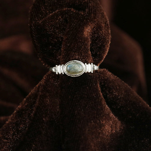 Bague mystique en argent avec labradorite dans un sertissage ovale – scintillante et mystérieuse. // Guide des tailles : Taille 5 USA/Canada // 50 ...