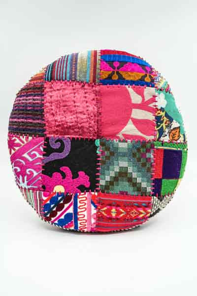 Afficher tous les détailsCoussin de sol Gaddi rond brodé Patchwork multicolore 40cm