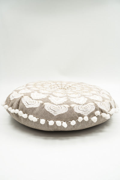 Coussin de siège Gaddi rond brodé taupe écru 40cm