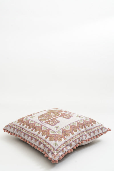 Coussin décoratif Éléphant brodé marron clair/vert/rose 40x40cm