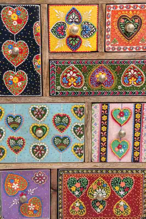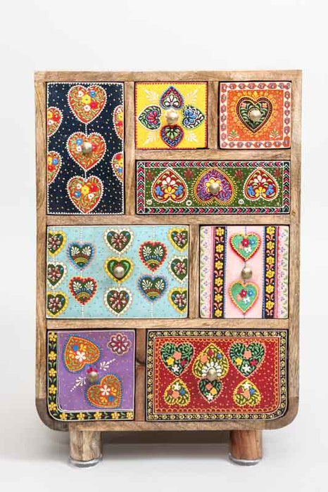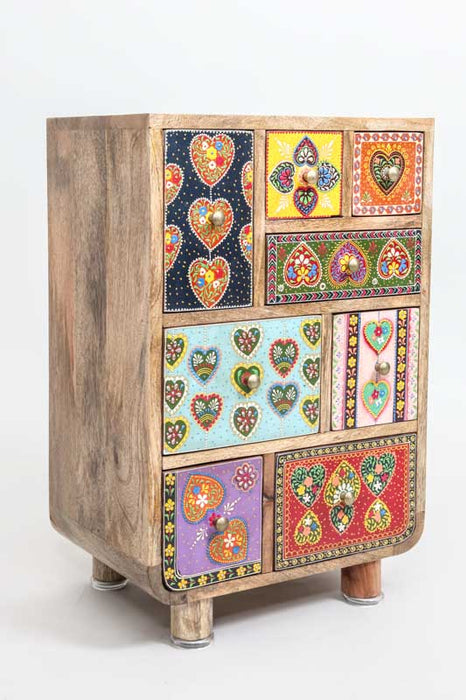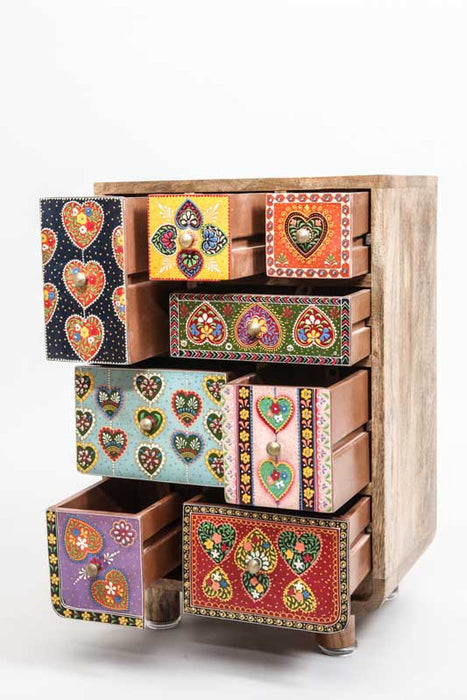 Kommode Mangoholz 8 Schubladen bemalt 42x29x64 cm