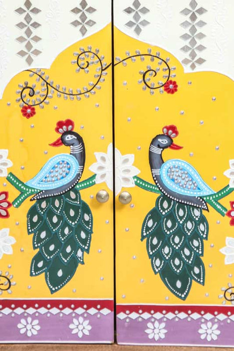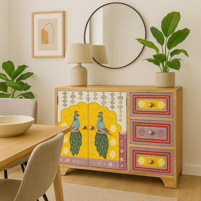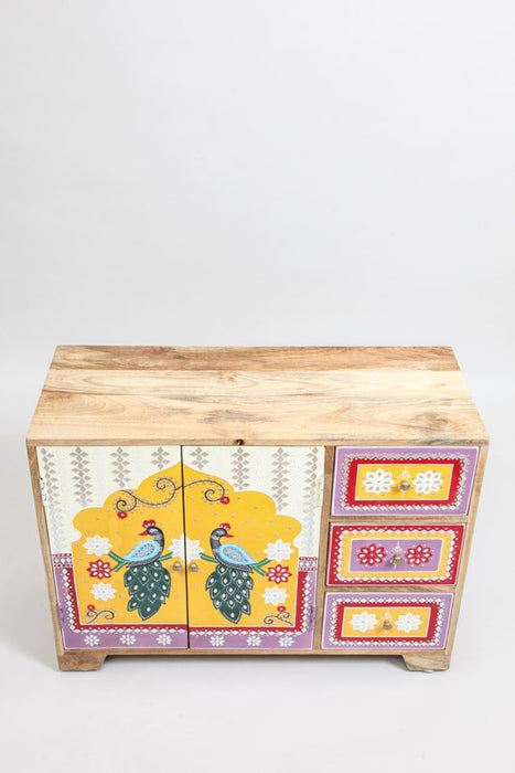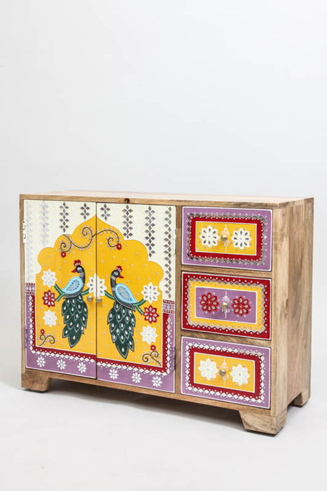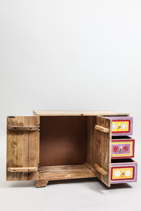 Kommode Mangoholz 3 Schubladen 2 Türen bemalt 148x40x90 cm