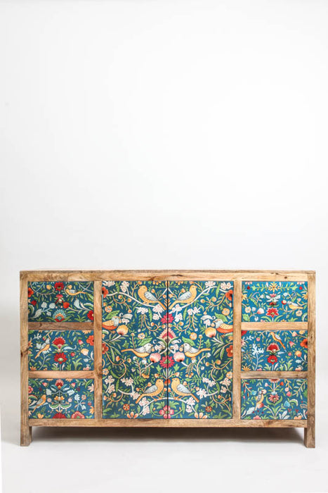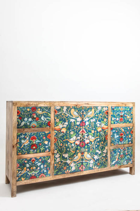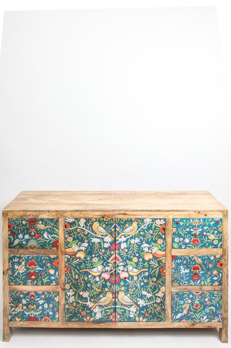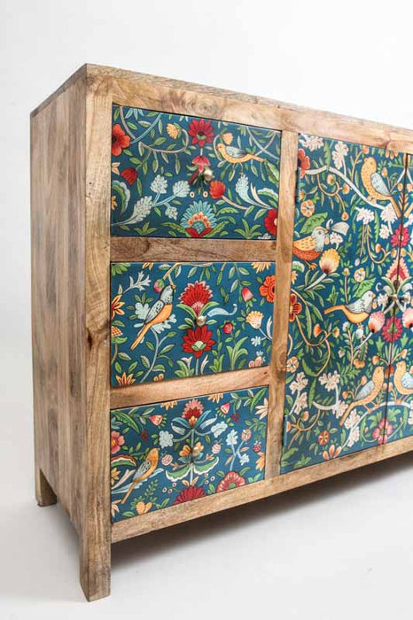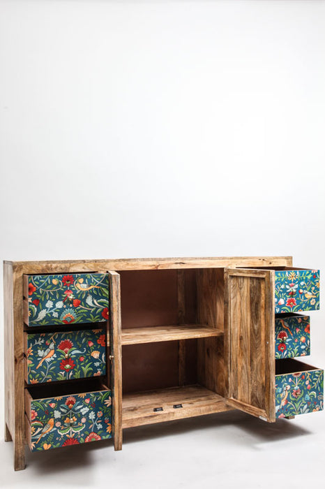 Kommode Mangoholz 6 Schubladen 2 Türen bemalt 180x40x90 cm
