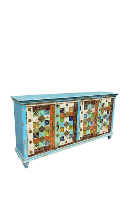 Sideboard Mangoholz 4 Türen multicolor 180x40x90cm