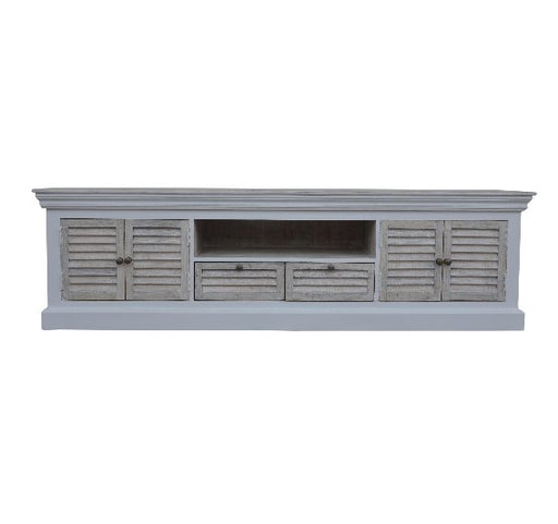 Vollständige Details anzeigenTV Möbel Mangoholz mit 4 Türen, 2 Schubladen und 2 offenen Fächern 190x40x54cm