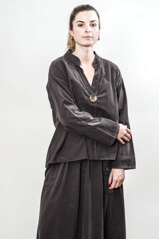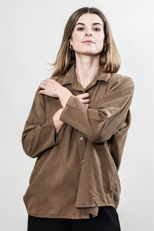Manchesterbluse Baumwolle dunkelbraun - One Size